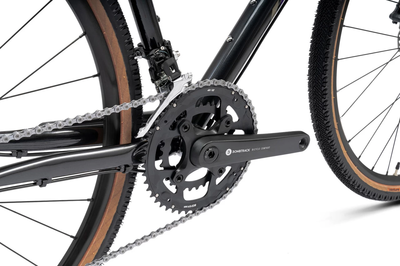 Specifications:Application:GravelWheel Size:27.5 (650B) (XS-S), 28″ (M-XL)Sizes:XS, S, M, L, XLFrame Material:steel (CrMo)Fork Material:CarbonComponents:Frame:Columbus Cromor / double buttedFork:Bombtrack EXT V2Stem:Bombtrack Roam / Aluminium, -7°Handlebars:Bombtrack CX-10 / 31.8 mm / 10° flareHeadset:EC34/28,6|EC44/40 / 1.5″ – 1 1/8″ / External Cup / sealedSeatpost:Bombtrack Beech / aluminium, 27.2 x 300 mmSaddle:Bombtrack CompCrank:Bombtrack Lyer / Aluminium, 32-48 Tooth / Direct MountPedals:noneBrakes:Shimano GRX BR-RX400 / Flat Mount, hydraulic, 160 mmShift/Brake lever:Shimano GRX ST-RX400 STI / hydraulic / 1 x 11Rear Derailleur:Shimano GRX RD-RX400Front Derailleur:Shimano GRX FD-RX400Cassette:Shimano CS-HG50 / 10-speed, 11-36 toothChain:KMC X10 EPT / 0.5″ x 11/128″ , 112 links (XS-S), 114 links (M-XL)Wheels:WTB ST Light i19 32mm rim / Bombtrack Tau hub, sealed, front 12 x 100 mm thru-axle, rear 12 x 142 mm thru-axleTyres:WTB Resolute 42-584 (XS-S), WTB Venture 40-622 (M-XL) / Tubeless ReadyApproved For:Weight Limit:120 kg (system weight)Rotor Size (max.):160 mmTyre Size (max.):front 650Bx52C / 700x45C / rear 650Bx42C / 700x42CChainrings:1x, 2xChainring Size (max.):40 tooth (1-speed), 32-48 tooth (2-speed)Features:steel frame made of double butted CrMo steelcarbon forkframe with braze-on eyelets for pannier rack and fenders/mudguardsTriple Cage eyelets on the forkinternal cable routing for dynamo cableGeometry:XS: