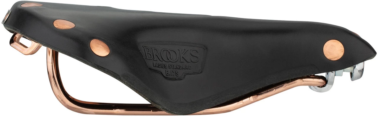 With the B17 Special Short Women’s saddle by Brooks you get a stylish, extra short version of the touring classic with copper-plated steel frame. This saddle has been specially designed for women and their needs, but can also be used by smaller riders because of its short length. The vegetable-tanned leather, the copper-coloured steel rails and the hand-hammered copper rivets create the unmistakable Brooks look. The saddle is perfect for longer tours and a more sporty riding style.