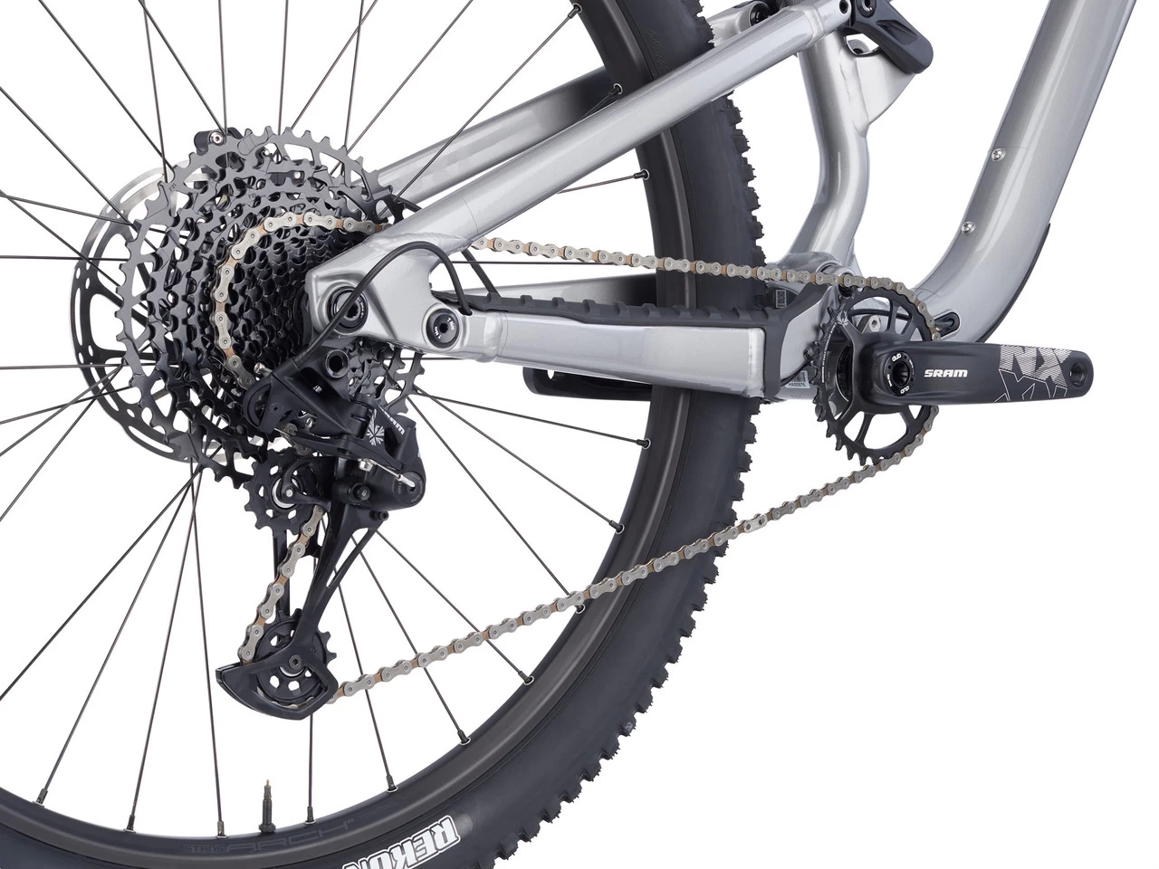 The Habit 3 mountain bike from Cannondale comes with 29-inch tyres and feels right at home on all-mountain trails thanks to 140 mm travel at the front and 130 mm at the rear. The suspension fork and shock come from RockShox, while the NX Eagle groupset from SRAM provides reliable propulsion. Thanks to Proportional Response Geometry, in which the frame design and also the behaviour of the chassis are adapted to each individual frame size, you are always centrally positioned and benefit from high traction and excellent handling.