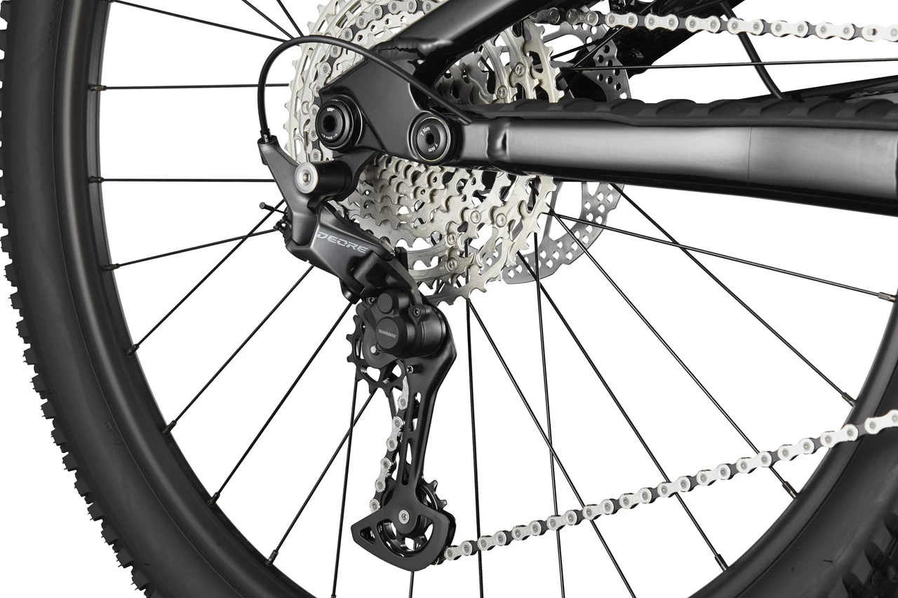 The Habit 4 mountain bike from Cannondale comes with 29-inch tyres and feels right at home on all-mountain trails thanks to 140 mm travel at the front and 130 mm at the rear. The Shimano Deore 1×12-speed groupset reliably moves you forward, and the hydraulic brakes are also from Shimano. The suspension uses a RockShox Reclon RL fork and a Deluxe Select air shock. Thanks to Proportional Response Geometry, in which the frame design and also the behaviour of the chassis are adapted to each individual frame size, you are always centrally positioned and benefit from high traction and excellent handling.