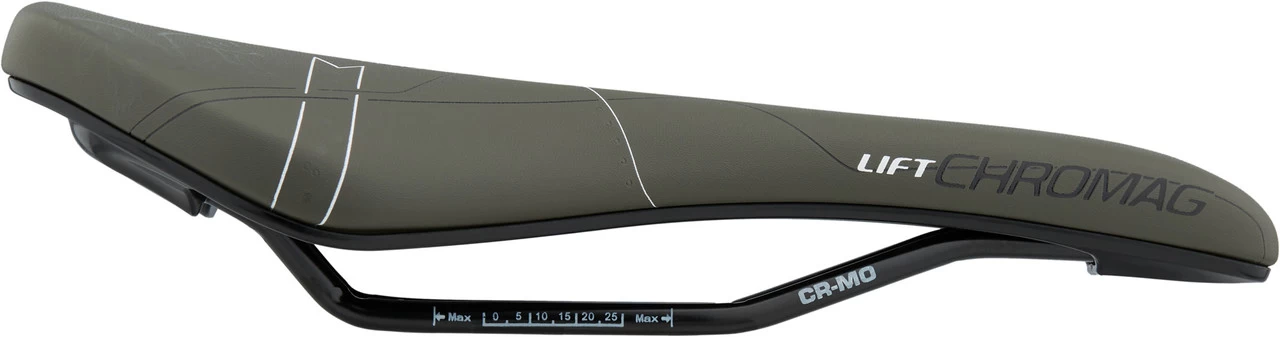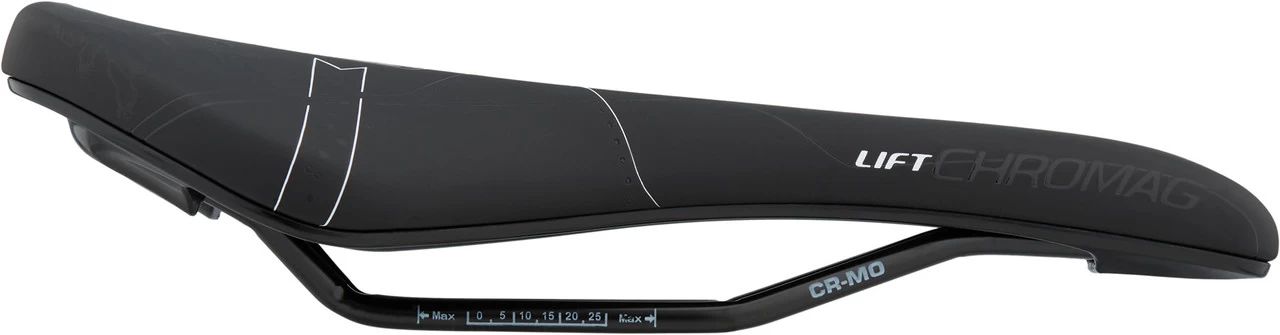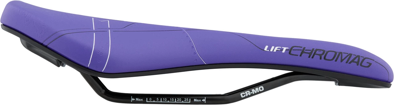 Specifications:Application:All Mountain, Cross Country, EnduroLength:280 mmWidth:140 mmSaddle Rails:7 x 7 mm (standard)Technical Information:Rail Material:steel (CrMo)Cover Material:composite materialFeatures:seat with large effective lengthlarge depression in the middlebetter pressure distributionfewer contact pointsequally suitable for men and womenproduced by vacuum forming processsmooth, seamless synthetic surface and clean edgesManufacturer Numbers:black-blue:130-13-01black-grey:130-13-02black-red:130-13-03purple:130-13-04rawhide:130-13-05red:130-13-06silver:130-13-07Contents:1 x Chromag Lift Saddle