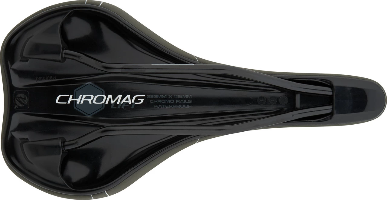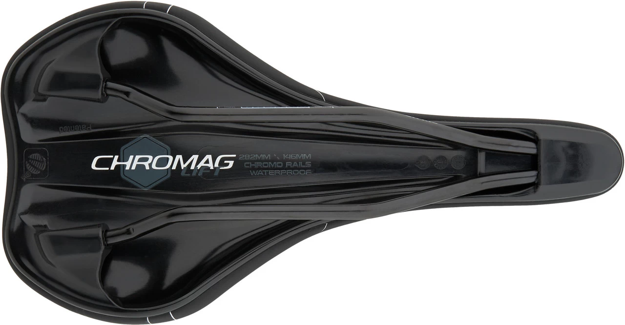 The Lift saddle from Chromag has an elongated seat and a large depression in the middle to distribute pressure more evenly and reduce direct contact with sensitive areas.