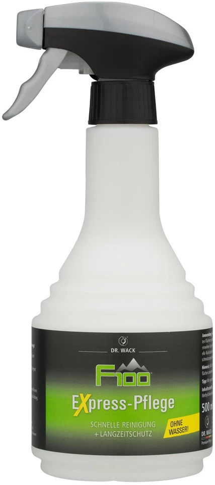 Dr. Wack’s F100 Express-Care is a cleaner and care product in one and can be applied quickly and easily without water. Medium and light soiling can easily be removed between two larger wash cycles. The F100 Express-Care is characterised by its particularly high material compatibility. It also preserves the paint, protects against weathering and reduces dirt adhesion. Just spray on, wipe off, done!