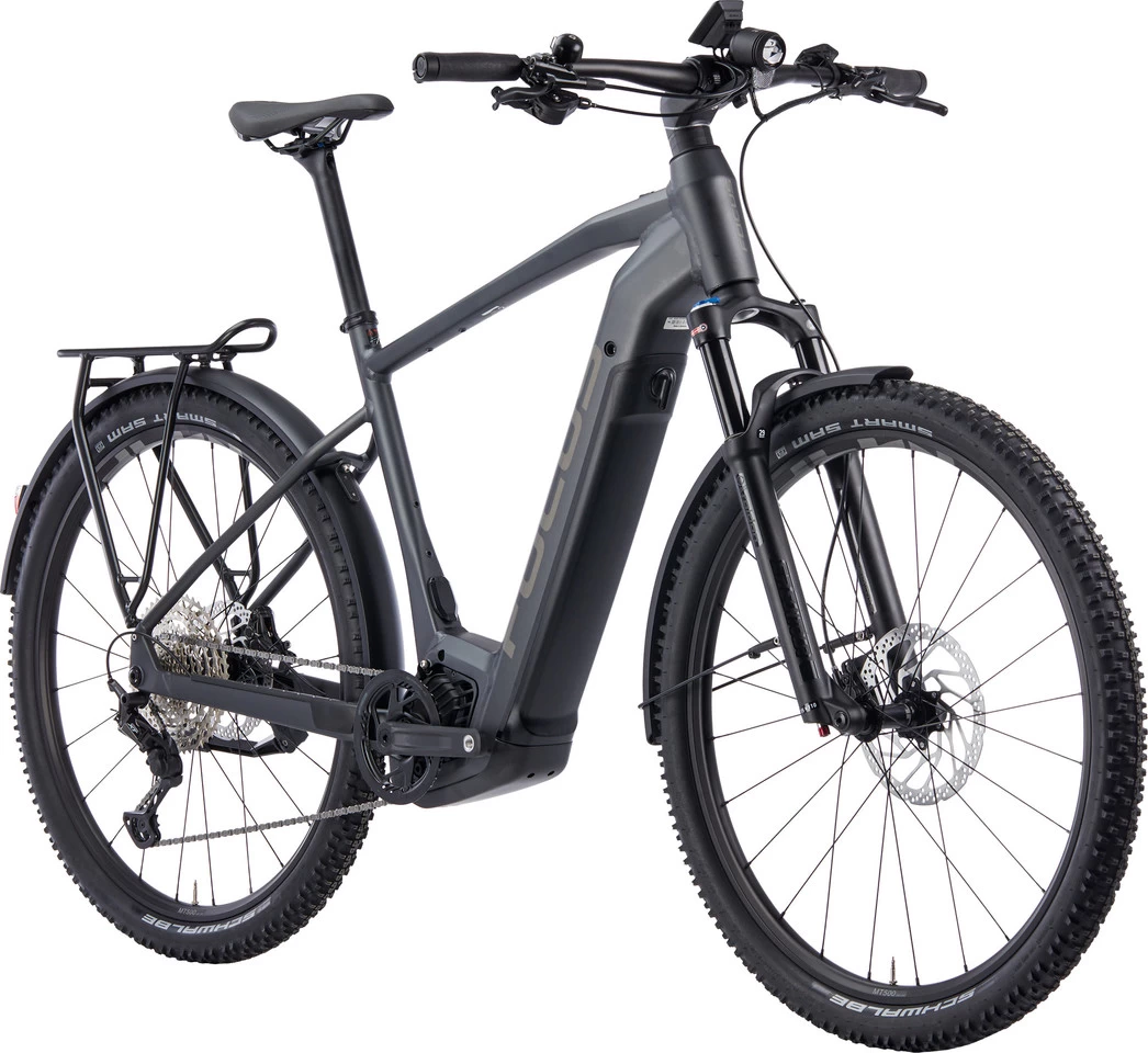 The FOCUS AVENTURA² 6.9 is a 29″ e-bike for everyday use and comes with Shimano Deore M6100 12-speed gears, Shimano MT420 4-piston disc brake and 100 mm suspension fork from Suntour. Its Bosch Performance CX Smart motor with 750 Wh battery (625 Wh for size S) supports you on rides in the city as well as in the countryside. Thanks to a lighting system with 130-lux front lamp, rear pannier rack and fenders, the AVENTURA² 6.9 is equipped for shopping trips, excursions and commuting, even in bad weather. Charge your smartphone or navigation device while riding via the integrated USB-C port.