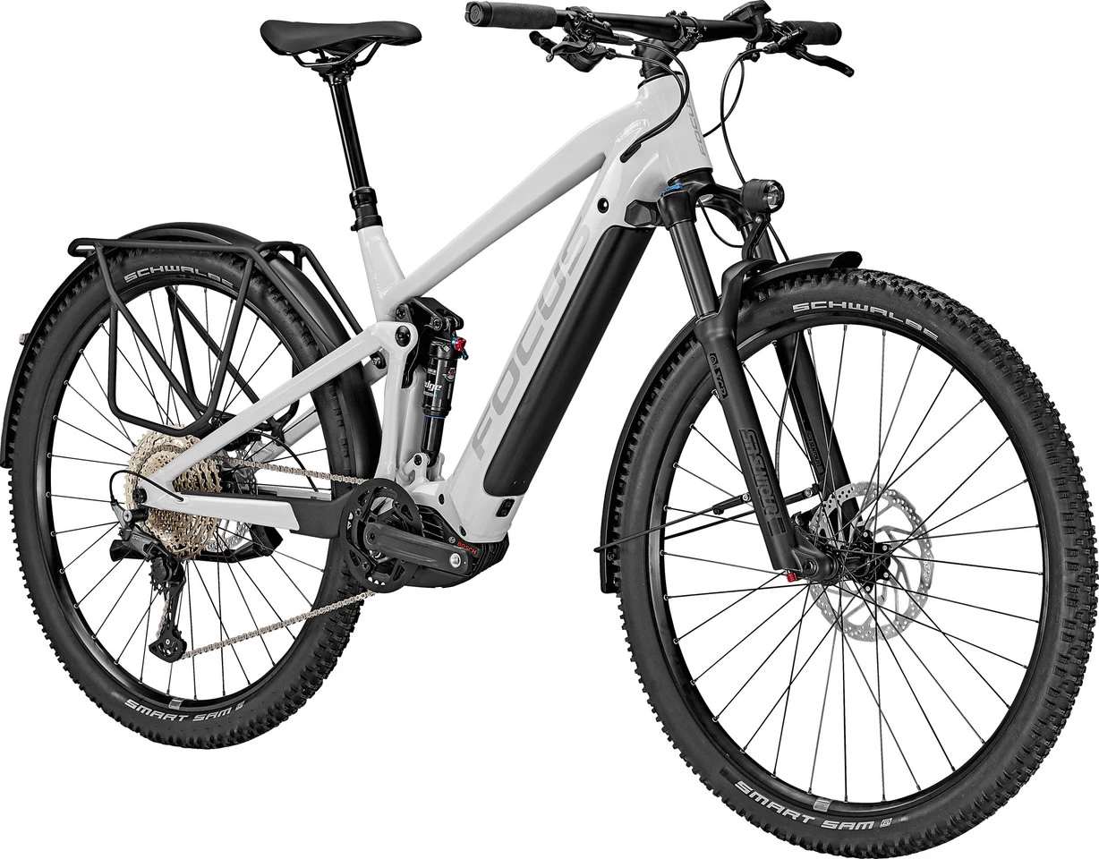 Specifications:Application:All Mountain, Touring, CityWheel Size:29″Front Travel:120 mmRear Travel:130 mmSizes:M, L, XLFront Triangle Material:aluminium (7005)Rear Triangle Material:aluminium (7005)E-Motor:Type:mid-drive motorMotor Type:Bosch Performance CX Gen4, 85 NmPedal Assist (max.):25 km/hPower:250 WBattery Type:Bosch Powertube, 36 V, removable, lockableCapacity:625 Wh (16.7 Ah)Display:Bosch PurionComponents:Frame:FOCUS THRON², hydroformed aluminium, 3D forged, F.O.L.D. linkage design, internal cable routing, Postmount 180 mm, 12 x 148 mm thru-axle (Boost)Fork:SR Suntour XCR 34 Air, LOR, 51 mm offset, 15 x 110 mm (Boost)Stem:FOCUS, aluminium, 17°, 31.8 mmHandlebars:FOCUS, Flat, 9° backsweep, 31.8 mmGrips:FOCUSRear Shock:Suntour Edge LOR, 190 x 45 mm, hardware: 25.0 x 8 mmRemote System:noneHeadset:VP Components ZS56/28.6-ZS56/40Seatpost:Post Modern Dropper Post PM-214, 31.6 mm, insertion depth min. 100 mmSaddle:Selle Royal VivoCrank:FSA CK-320, aluminium, bottom bracket integrated in motor unit, 34 T chainringPedals:MTB, with reflectorsBrakes:Shimano MT420, hydraulic disc brake, 4 pistons, 203 mm/180 mmShift Lever:Shimano Deore M5100, 11-speedRear Derailleur:Shimano Deore RD-M5100Cassette:Shimano Deore CS-M5100, 11-speed, 11-51 TChain:Shimano CN-HG601, 11-speedRims:RODI TRYP25, eyeleted, 25-622Spokes:Niro, blackFront Hub:Shimano Alivio MT400, 15 x 110 mmRear Hub:Shimano Alivio MT400, 12 x 148 mmFront Tyre:Schwalbe Smart Sam 2.25″ , 57-622Rear Tyre:Schwalbe Smart Sam 2.25″ , 57-622Approved For:Weight Limit:135 kgRotor Size (max.):203 mm (rear)Tyre Size (max.):29 x 2.3″Chainrings:1xChainring Size (max.):1x, 36 TFeatures:versatile pedelec with 130 mm F.O.L.D. linkage design for trails, touring, bikepacking and commutingEQP version: fully equipped for everyday useBosch CX E-Drive and 625 Wh battery, removable for charging120 mm SR Suntour suspension forkfender set from Büchel, aluminium, 60 mm, powder-coatedMassload pannier rack, 3 struts, 25 kg load capacityUrsus rear kickstand, adjustable, 40 mm mountLitemove SE70 front light, 70 luxHerrmans H-Trace Mini rear lightOption for integrated cable routing in the cockpit (C.I.S.)EN classification 2: Bicycle / pedelec for leisure riding with moderate effort, for paved surfaces and unpaved roads or gravel paths of moderate difficulty, drops of no more than 15 cm, average speed 15 to 25 km/hTechnology:FOCUS Optimized Linkage Design (F.O.L.D.)