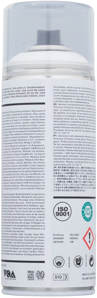 Manufacturer’s Warning:Optimum ambient temperature while spraying: 20-25°C. Do not use Spray.Bike at outside temperatures below 10°C, above 35°C or at a relative humidity level greater than 75%. Keep the can well-protected from sunlight and ambient temperatures above 50°C/122°F.CLP Regulation Label: