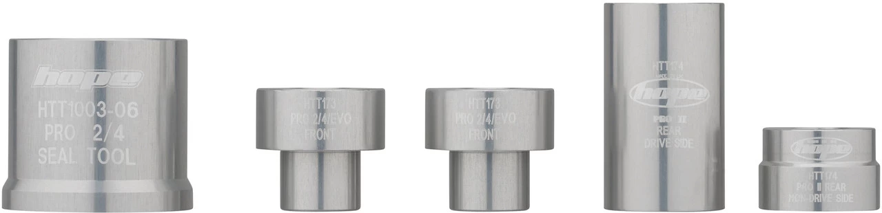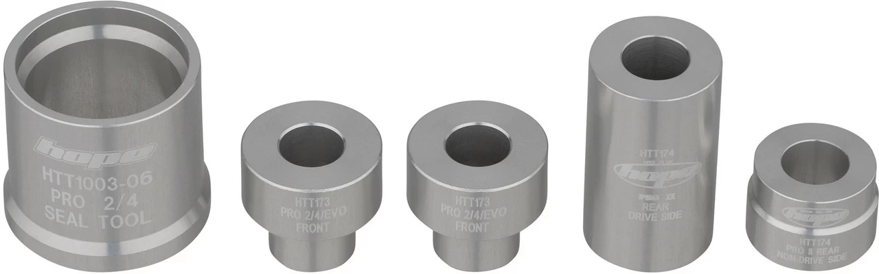 Contents:1 x Hope HTT173 bearing support bush for Pro 2 and Pro 4 front hubs, 2 pieces1 x Hope HTT174 bearing support bush for Pro 2 rear hubs, 2-piece1 x Hope HTT1003-06 seal tool for Pro 2 / Pro 4