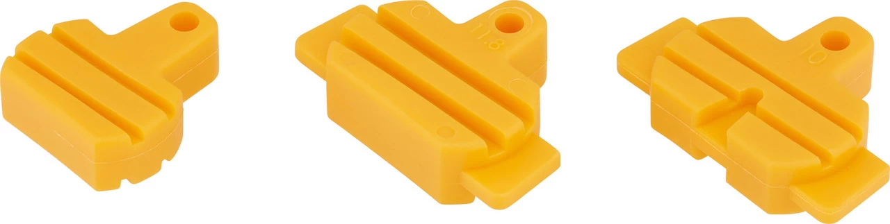 The Jagwire Bleed Blocks are three differently-shaped bleed blocks for two-piston and four-piston disc brakes.