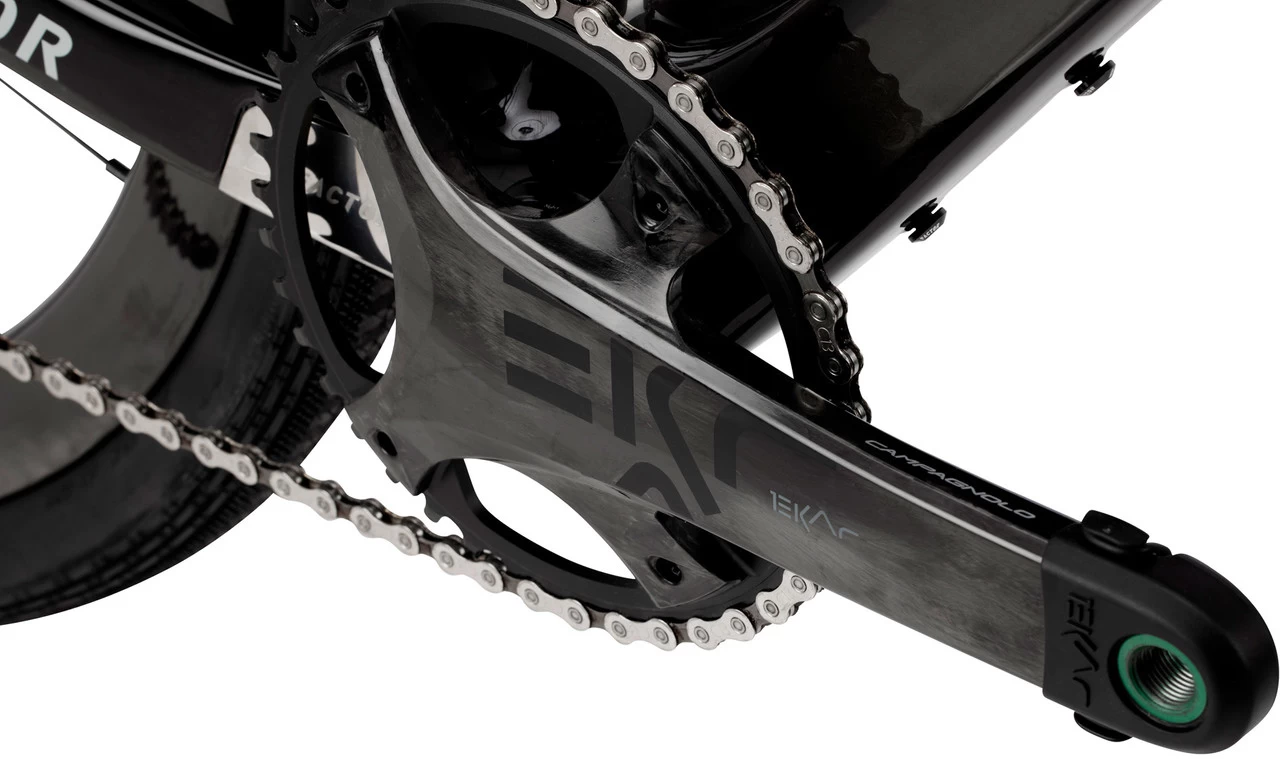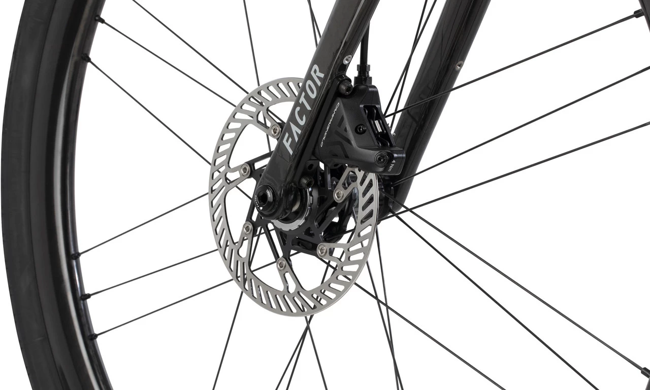 Specifications:Application:GravelWheel Size:28″Sizes:49 cm, 52 cm, 54 cm, 56 cm, 58 cmFrame Material:CarbonFork Material:CarbonComponents:Frame:Factor LSFork:Factor LSStem:Black Inc Integrated Handlebar StemHandlebars:Black Inc handlebar stem unit, drop 125 mm, reach 80 mmHeadset:IS41/28.6 – IS49/37 (top to bottom)Seatpost:Black Inc Carbon seatpost, 27.2 mm, 350 mm, SB 0 mmSaddle:Fizik Terra Argo X3 saddleCrank:Campagnolo Ekar Ultra Torque Carbon 13-speed crankset, 40 TPedals:noneBrakes:Campagnolo Ekar, AFS Center Lock brake rotor, 160 mmShift/Brake lever:Campagnolo EkarRear Derailleur:Campagnolo EkarCassette:Campganolo Ekar 13-speed, 9-42 toothChain:Campagnolo Ekar 13-speedWheels:Campagnolo Shamal Carbon Center Lock Disc 28″ , front 12 x 100 mm, rear 12 x 142 mm, Campa N3WTyres:Panaracer Gavelking Semi Slick TLC, 40-622 (700x40C)Approved For:Rotor Size (max.):160 mmTyre Size (max.):40-622 (700x40c)Chainrings:1x, 2xFeatures:performance-oriented frame for Gravel mass start races13-speed driverigid design and aggressive geometryaerodynamic integrated handlebar stemlow bottom bracket, optimal wheelbaseeyelets for bottle holder and triathlon bagsuitable for racing in winter and for trainingasymmetrical bottom bracket connection for maximum stiffnessseatstays with kink and curved seat tube for increased comfortintegrated mudguard holdersremovable front derailleur mount and cover platechainstay protectionpainted UD carbonGeometry:49 cm: