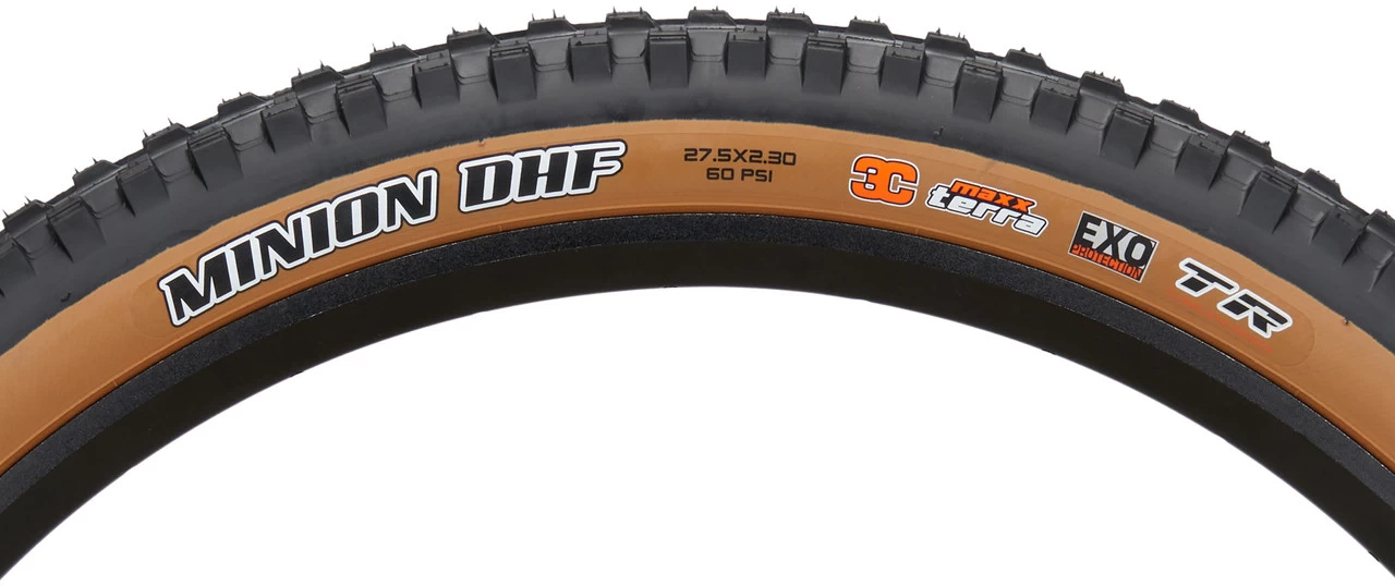 Contents:1 x Maxxis Minion DHF EXO TR 3C MaxxTerra Tanwall 27.5″ Folding Tyre