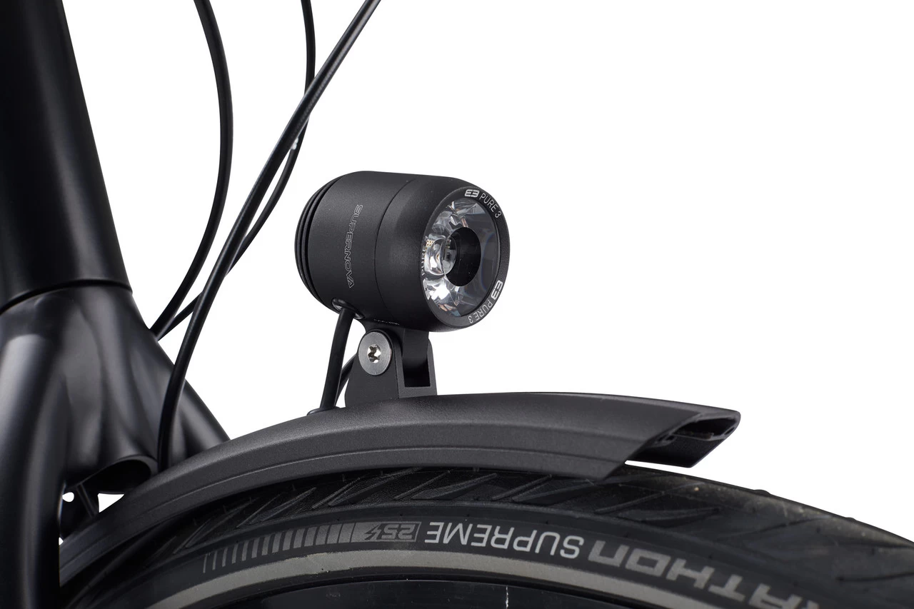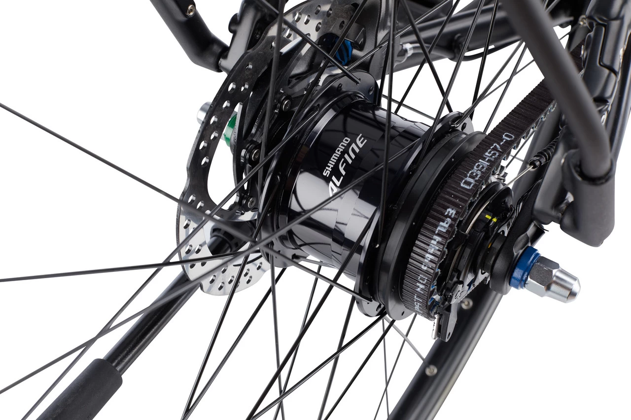 The Modell 1 women’s bike with a lowered frame, a complete in-house development under our brand Vortrieb, is intended for modern everyday and leisure cyclists. At its heart is Racktime’s revolutionary Wingee fender rack system, which we combine with extremely high-quality and durable equipment: an Alfine 11-speed internally geared hub with Gates belt drive, Supernova lighting, Ergon contact points – all the finest and 100% our thing. The Modell 1 for women does justice to the German word Vortrieb, which translates to ” propulsion” : the frame is stiff and effectively converts every pedal stroke into forward motion. The rigid fork and wide handlebars ensure reactive handling. The brakes work phenomenally. The seating position is sporty and central. Here we remain true to ourselves as well as the brand’s name – and that is simply consistent.