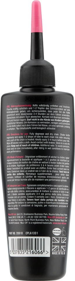 Nominal Amount:125 mlPackaging Type:dropper bottleManufacturer Number:20910Contents:1 x Muc-Off All Weather Chain Lube