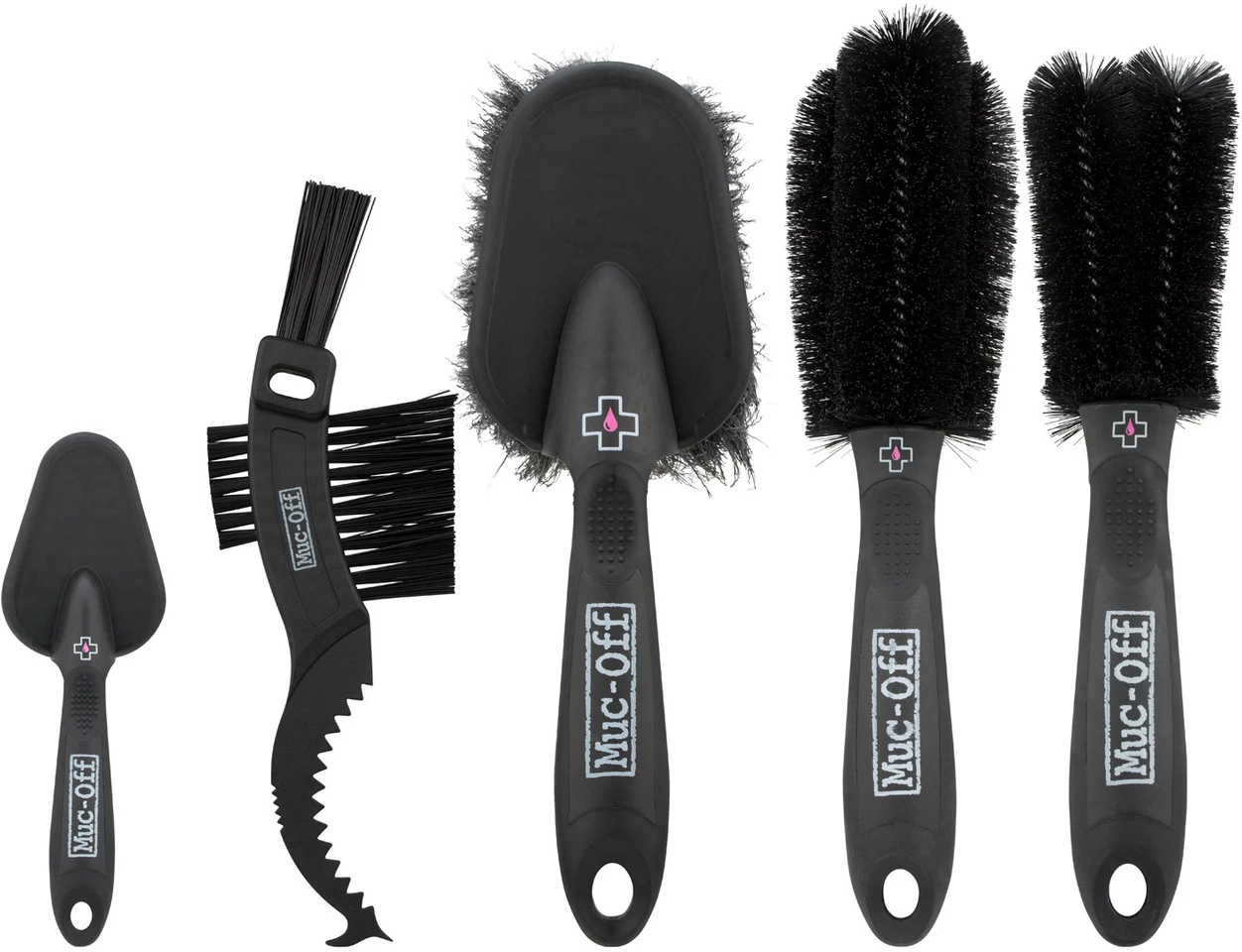 1 x Soft Washing Brush1 x Detailing Brush1 x Claw Brush1 x Wheel & Component brush1 x Two Prong brushFeatures:Soft Washing Brush for gentle frame cleaningDetailing Brush for cleaning hard to reach placesClaw Brush is ideal for chain, cassette and sprocketWheel & Component Brush for cleaning spokes and rimsTwo Prong Brush is ideal for cleaning spokes, brake rotors, dampers, cranks and pedalsContents:1 x Muc-Off Brush Set, 5-piece