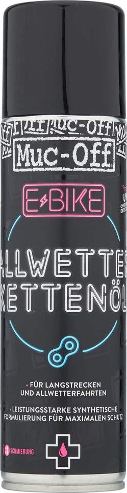 Specifications:Designation:Muc-Off eBike All Weather Lube (Pineapple) / ALLWETTER KETTENÖLApplication:Drivetrain lubricantFeatures:specifically developed for E-Bikescan withstand high pressurelong lubrication interval for long distancessuitable for all weather and ground conditionsApplication:clean and dry chain completelyshake well and spray chain thoroughlyapply second coat to increase the protection level