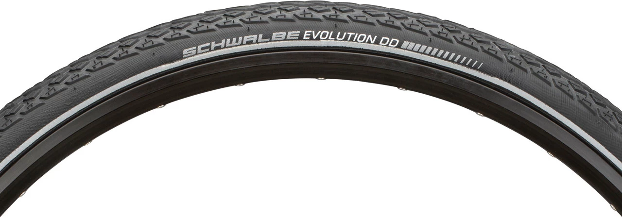 Specifications:Application:City & TouringProduct Line:EvolutionType:folding tyreTubeless System:noneTechnical Information:Rubber Compound:TRSCTread:HS 428Carcass:67 tpiSidewall:SnakeSkinPuncture Protection:DD, V-GuardStrengths / Weaknesses:Rolling Resistance:4 (out of 6)Road Grip:4 (out of 6)Off-Road Grip:3.5 (out of 6)Puncture Protection:6 (out of 6)Durability:6 (out of 6)Models:37-622 (28×1.4)