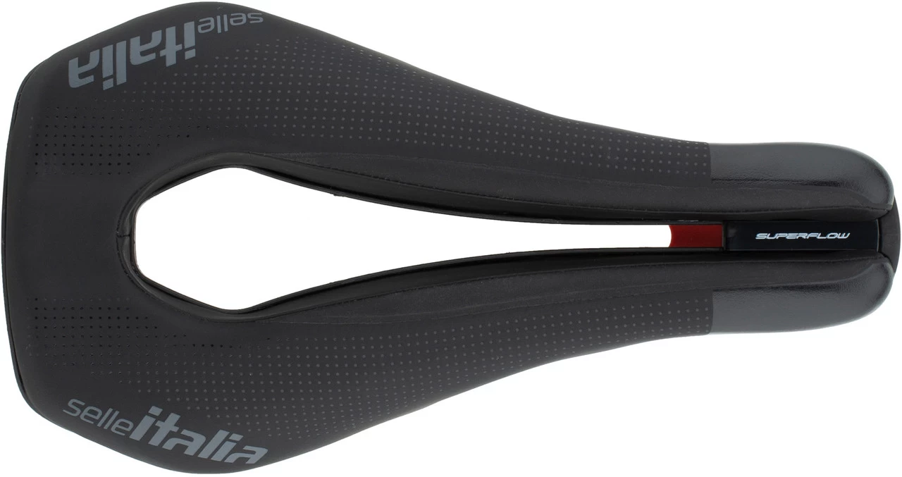 The Watt Kit Carbonio Superflow saddle by Selle Italia has been specifically designed for triathlon use. It has carbon rails, and the cutout in the middle provides pressure relief in the perineal area.
