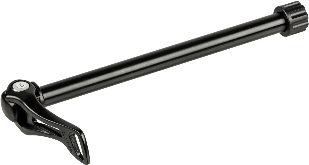 Specifications:Over Locknut Dimension:Rear: 148 mmAxle Diameter:12 mmTechnical Information:Use:rear: 12 x 148 mmType:thru-axle with quick release leverAxle Material:AluminiumLever Material:AluminiumCam Body/Adjusting Nut Material:AluminiumAxle Length:177 mmNominal Diameter:M12Thread Pitch:1.5Features:Shimano E-Thruright locknuthollow axleaxle, lever and nut black anodisedManufacturer Number:E-SMAX76B