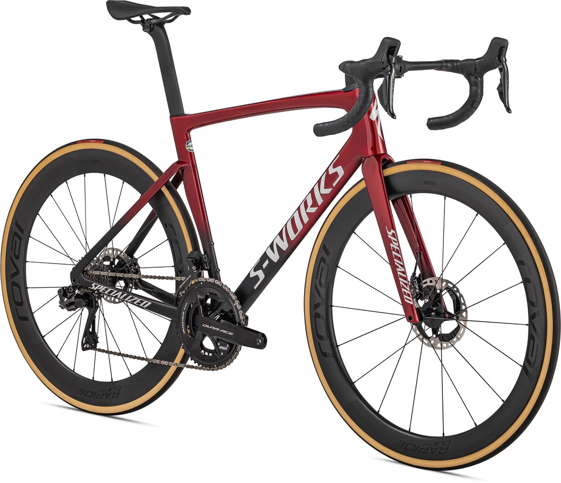 Specifications:Application:RoadWheel Size:28″Sizes:54 cm, 56 cm, 58 cmFrame Material:carbon (12r)Fork Material:CarbonComponents:Frame:Specialized S-Works Tarmac SL7 FACT™ 12r Carbon, Flat Mount Disc, 12 x 142 mmFork:Specialized S-Works FACT Carbon, Flat Mount Disc, 366 mm installation length, 12 x 100 mmStem:Specialized Tarmac integrated, 6°Handlebars:Roval Rapide, CarbonHeadset:Specialized S162500005 (49.5 x 40.5 x 6.5 mm, 45 x 45°)Seatpost:Specialized 2021 S-Works Tarmac Carbon, FACT Carbon, 20 mm SetbackSaddle:Specialized Body Geometry S-Works Power, carbon rails, carbon shellCrank:Shimano Dura-Ace R9200, Shimano Dura-Ace BB-R9100 bottom bracket, 36-52 TPedals:noneBrakes:Shimano Dura-Ace R9270, hydraulic disc brakeShift/Brake lever:Shimano Dura-Ace R9270, electronic / hydraulicRear Derailleur:Shimano Dura-Ace R9250, 12-speedFront Derailleur:Shimano Dura-Ace R9250, braze-onCassette:Shimano Dura-Ace R9200Chain:Shimano XTR M9100, 12-speed, with Quick-LinkWheels:Roval Rapide CLX, carbon rims, 21 mm jaw width, 51 mm/60 mm rim depth, Win Tunnel Engineered + Roval AFD hubs, 18/24 holes + DT Swiss Aerolite spokesTyres:Specialized Turbo Cotton, 320 tpi, 700 x 26 mmApproved For:Weight Limit:109 kg (rider + gear)Rotor Size (max.):160 mmTyre Size (max.):32-622 (700x32c)Chainrings:2-speedFeatures:developed based on the design of the Venge using the FreeFoil Shape Library, isotope FEA analysis, wind tunnel etc. for the best combination of aerodynamics and featherlight weightdeveloped with feedback from professional riderscomfortable even on long journeys with perfect handling and racing speedunique layup plan for each frame size with different arrangements, alignments, and material quantities in certain areaseasy integration for a clean and overall fast cockpitSupacaz Super Sticky Kush handlebar tapeSpecialized Turbo Ultralight tubes with 60 mm SV valvesTechnology:FACT™