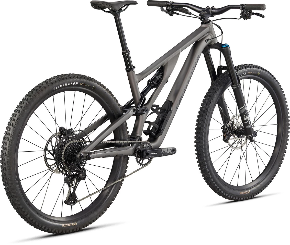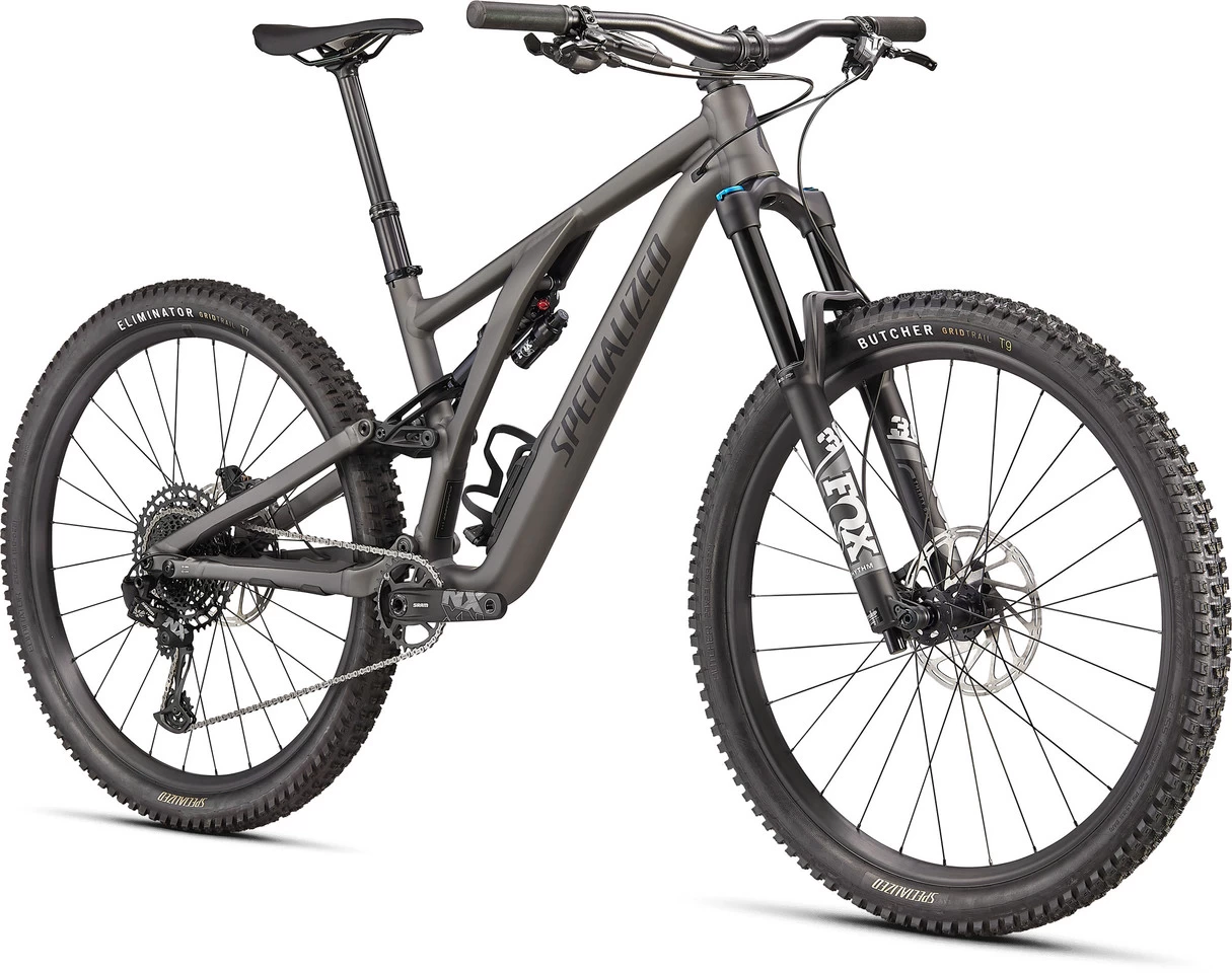 Specifications:Application:Enduro, All MountainWheel Size:29″Front Travel:150 mm (S1), 160 mm (S2 – S6)Rear Travel:150 mmSizes:S1, S2, S3, S4, S5, S6Front Triangle Material:aluminium (M5)Rear Triangle Material:aluminium (M5)Components:Frame:Specialized Stumpjumper EVO Alloy, asymmetric design, 29 trail geometry (EVO) with S-sizing, SWAT technology, 12 x 148 mm BoostFork:Fox Racing Shox Float 36 Rhythm, GRIP damping, 2-position sweep adjustment, 44 mm offset, 131 mm trail, 15 x 110 mm BoostStem:Specialized Alloy Trail, 35 mm clampHandlebars:Specialized, aluminium (6061), 8° backsweep, 6° upsweep, 30 mm riseGrips:Specialized TrailRear Shock:Fox Racing Shox Float X Performance, RX Trail Tune, EVOL Air Sleeve, 2-position lever with LSR adjustment, 210 x 50 mm (S1), 210 x 55 mm (S2 – S6)Remote System:noneHeadset:Specialized S182500005 (NO.42/ACB/S/F/N, 1 1/8″ – 1,5″ )Seatpost:X-Fusion Manic, infinitely adjustable, 2-bolt head, cable routing from below, SLR LE remote lever, 34.9 mmSaddle:Specialized Bridge Comp, hollow CrMo steel strutsCrank:SRAM NX Eagle DUB, SRAM DUB BSA 73 mm bottom bracket, 30 T steel chainringPedals:noneBrakes:SRAM Code R, hydraulic disc brake, 4 pistons, 200 mm/200 mmShift Lever:SRAM NX Eagle, Trigger, 12-speedRear Derailleur:SRAM NX Eagle, 12-speedCassette:SRAM NX Eagle PG-1230, 12-speed, 11-50 tChain:SRAM NX Eagle, 12-speedRims:Specialized 29, aluminium, hookless, 30 mm jaw width, tubeless readySpokes:DT Swiss IndustryFront Hub:Specialized, aluminium, sealed cartridge bearings, 15 x 110 mm, 28 holesRear Hub:Specialized, aluminium, sealed cartridge bearings, 12 x 148 mm, 32 holesFront Tyre:Specialized Butcher, Grid Trail casing, GRIPTON® T9 rubber compound, 2Bliss Ready, 29 x 2.3″Rear Tyre:Specialized Eliminator, Grid Trail casing, GRIPTON T7 rubber compound, 29 x 2.3″Approved For:Weight Limit:136 kg (rider + gear)Rotor Size (max.):220 mm (front)Chainrings:1xFeatures:state-of-the-art trail bike with progressive geometry (almost identical to carbon model) for maximum confidence, performance and controlimproved manufacturing processes ensure comparability with carbon modelsophisticated linkage design for the most difficult trailsEVO geometry adjustable at six points: bottom bracket height high/low, head tube angle steep/medium/flat, option for 27.5″ rear wheelsealed cartridge bearing frame jointscomplete internal cable routingreplaceable derailleur hangerSWAT opening in the down tube without sacrificing stiffnessaluminium seatpost clamp 38.6 mmstandard tubes (Presta)Technology:Stumpjumper EVO Trail Geometry