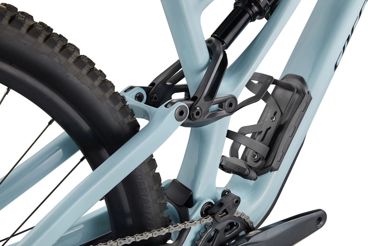 Stumpjumper EVO bikes from Specialized can be set up in six different ways so that the geometry fits your riding preferences. Three headset shells (Steep, Middle, Slack) allow the steering angle to be varied by 2 degrees, and Horst-Link flip chips allow the bottom bracket to be raised by 7 mm. A damper link is also optionally available, which allows you to set it up as a mullet – with 29″ front wheel and 27.5″ rear wheel. Another important feature of the Stumpjumper EVO is the S-sizing – a frame size classification that takes into account not only your inner leg length, but also your technical riding ability. Here Specia