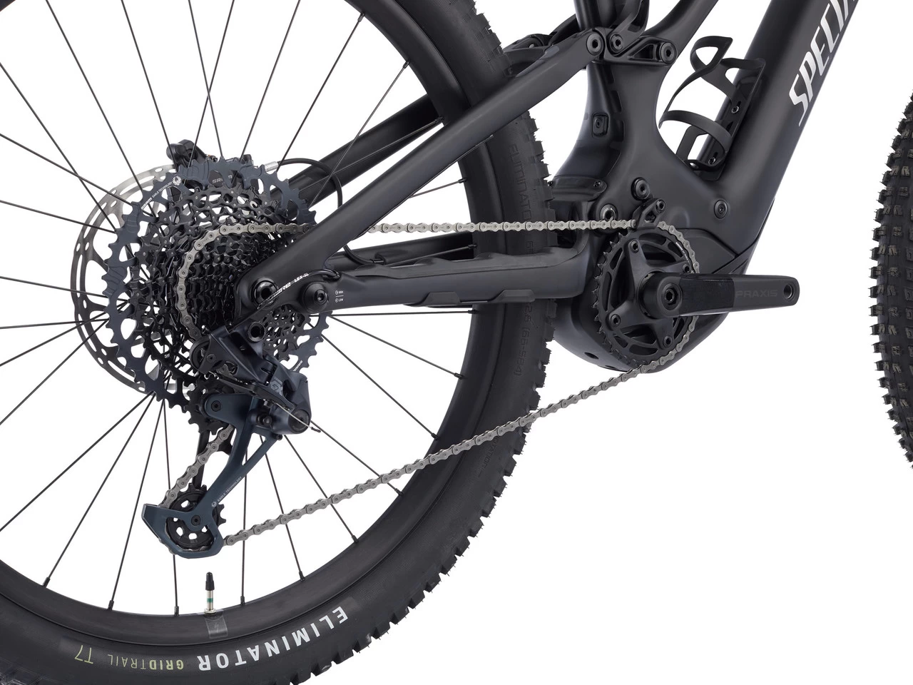 Specifications:Application:All MountainWheel Size:Scaled SizingFront Travel:160 mm (S1: 150 mm)Rear Travel:150 mmSizes:S1, S2, S3, S4, S5, S6Front Triangle Material:carbon (11m)Rear Triangle Material:carbon (11m)E-Motor:Type:mid-drive motorMotor Type:Specialized Turbo Full Power System 2.2, RX Trail Tune, 90 NmPedal Assist (max.):25 km/hPower:565 WBattery Type:Specialized M3-700, integrated, SBC-B22*Capacity:700 WhDisplay:Specialized TCU2, TFT screen, complete custom set-up, ANT+, Bluetooth, with handlebar remote