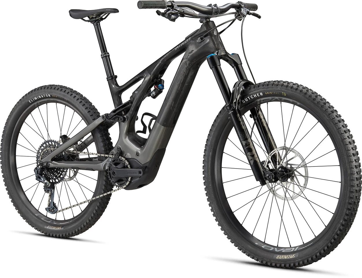 Components:Frame:Specialized Turbo Levo, FACT™ carbon, sealed cartridge bearings, 12 x 148 mmFork:Fox Racing Shox Float 38 Performance Elite 29″ , GRIP2 damping, HSC, LSC, HSR, LSR, 1.5″ tapered, 15 x 110 mm, 44 mm offset, 130 mm trailStem:Specialized Trail, 6°, aluminium, 4 screws, 3D forgedHandlebars:Specialized Trail, aluminium (7050), 780 mm, 8° backsweep, 6° upsweep, 30 mm rise, 35 mm clampGrips:Deity Knuckleduster, blackRear Shock:Fox Racing Shox Float X2 Performance Elite, LSC, LSR, 2-position lever, 55 x 210 mmRemote System:noneHeadset:Specialized S182500005 (NO.42/ACB/S/F/N, 1 1/8″ – 1.5″ )Seatpost:X-Fusion Manic, infinitely adjustable, 2-bolt clamping, cable routing from below, remote SLR LE lever, 34.9 mmSaddle:Specialized Bridge Comp, hollow steel railsCrank:Praxis Works forged alloy M30, custom offset, 160.0 mm, SRAM X-Sync Eagle chainring, 104 BCD, 32 t, steelPedals:noneBrakes:SRAM Code RS, 4 piston, hydraulic disc brake, 200 mm rearShift Lever:SRAM X01 Eagle Trigger, 12-speed, Single ClickRear Derailleur:SRAM X01 Eagle, 12-speedCassette:SRAM XG-1275, 12-speed, 10-52 tChain:SRAM GX Eagle, 12-speedRims:Roval Traverse 29″ (front), Roval Traverse 27.5″ (rear)Spokes:DT SwissFront Hub:Roval, 15 x 110 mmRear Hub:Roval with DT Swiss 360 internal, SRAM XD freehub, 12 x 148 mmFront Tyre:Specialized Butcher, Grid Trail casing, GRIPTON® T9 rubber compound, 2Bliss Ready, 29 x 2.6″Rear Tyre:Specialized Eliminator, Grid Trail casing, GRIPTON T7 rubber compound, 2Bliss Ready, 27.5 x 2.6″Approved For:Weight Limit:125 kg (rider + gear)Rotor Size (max.):220 mmTyre Size (max.):2.6″Chainrings:1xChainring Size (max.):34 TFeatures:mullet body with 29″ front wheel and 27.5″ rear wheelagility thanks to modern geometry and revised linkage designplenty of cockpit space, short chainstays, low bottom bracket, less fork offsetcomplete internal cable routingsteering angle adjustable via headset cups: 63.5°, 64.5° or 65.5°bottom bracket height adjustable via Horst Link flip chip: 350 or 344 mm (for S1: 352 or 346 mm)boosts your performance fourfold with 565 W and 90 Nm of maximum powerTFT colour display: the most important data and parameters kept at-a-glance while ridingmotor support configurable in 10% increments while ridingreworked battery with triple dirt-protected charging socketup to 5 hours battery lifeSWAT™ CC steerer tube with integrated tool (chain riveter)standard tubes with SV / Presta valvesaluminium seat clamp, 38.6 mmMission Control App available for download in the App S
