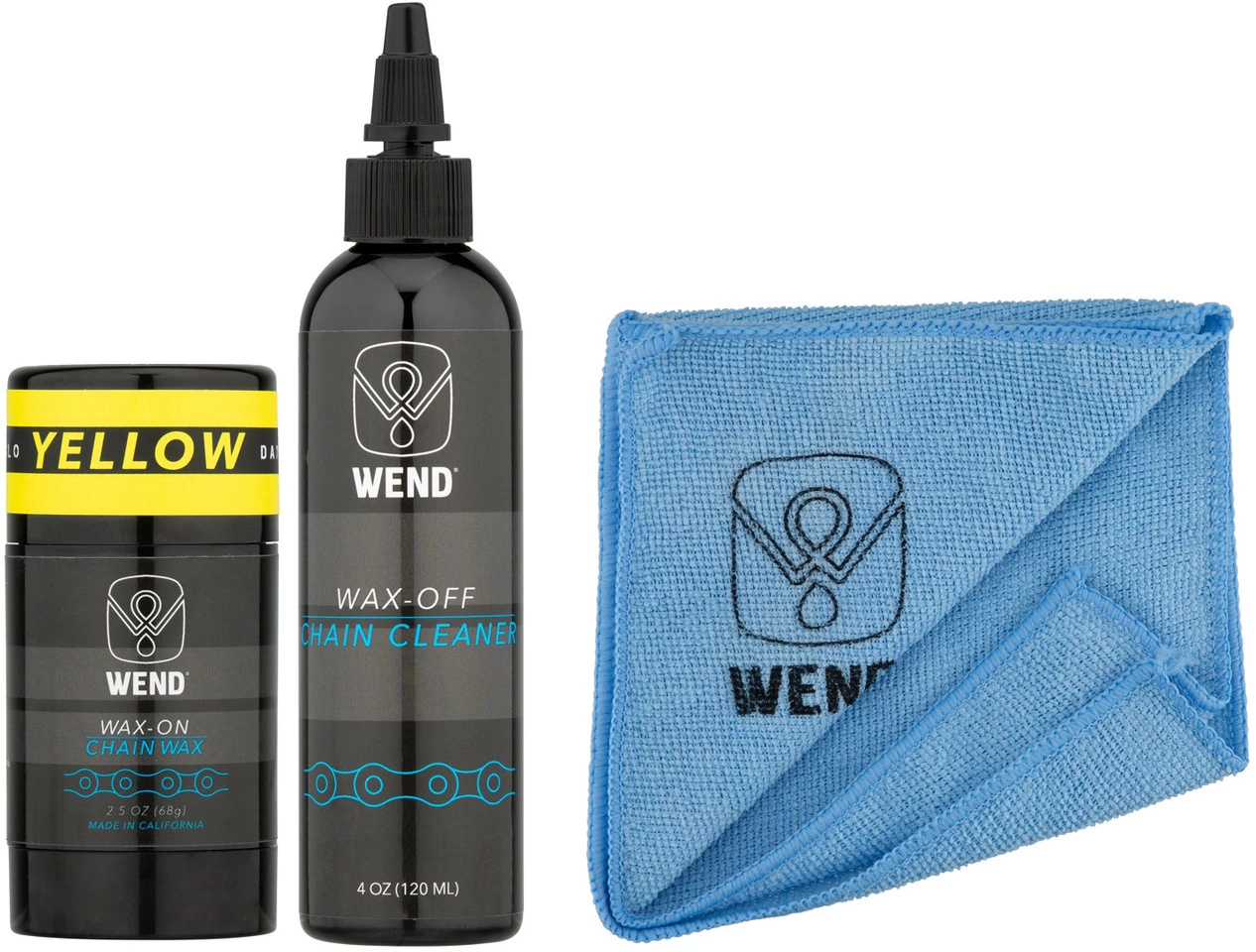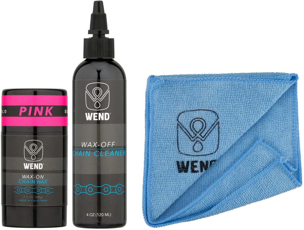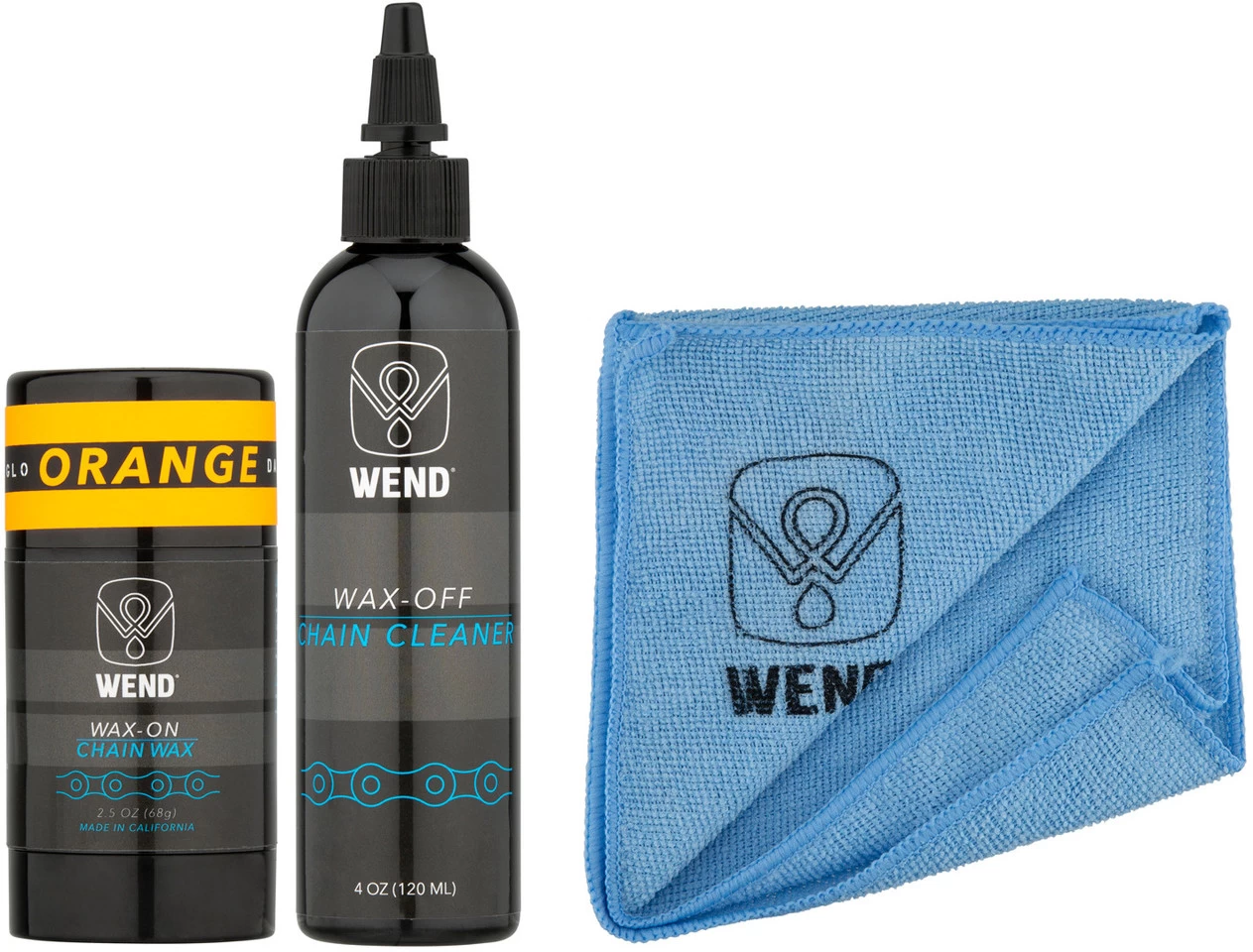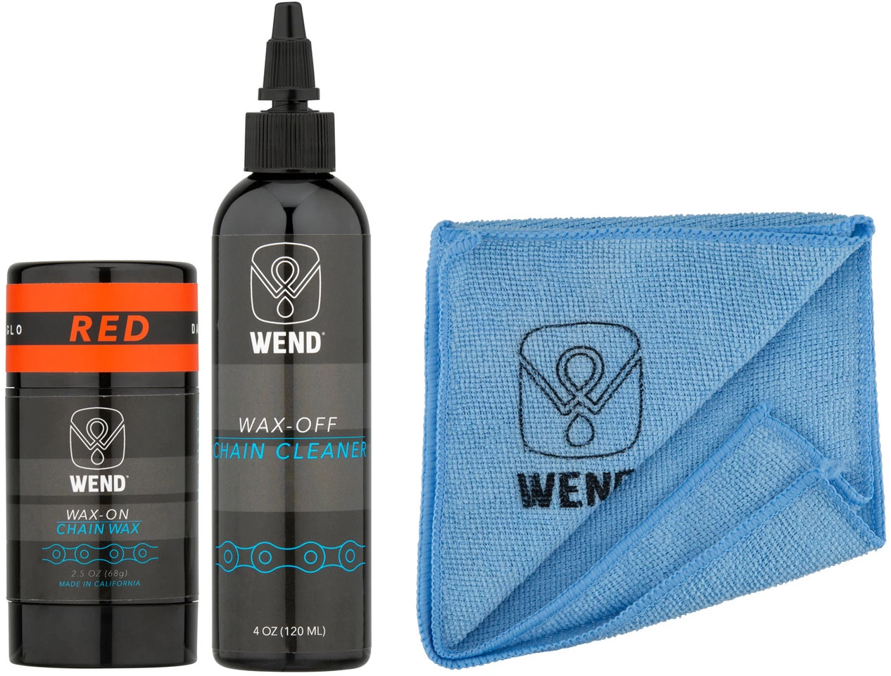 Wax-OFF Chain CleanerWax-ON Chain WaxManufacturer Numbers:blue:WWWOWOBLgreen:WWWOWOGorange:WWWOWOOpink:WWWOWOPred:WWWOWORyellow:WWWOWOYpurple:WWWOWOPLContents:1 x WEND Wax Wax-OFF 120 ml chain cleaner1 x WEND Wax Wax-ON Spectrum Colors 80 ml chain wax1 x microfibre cloth