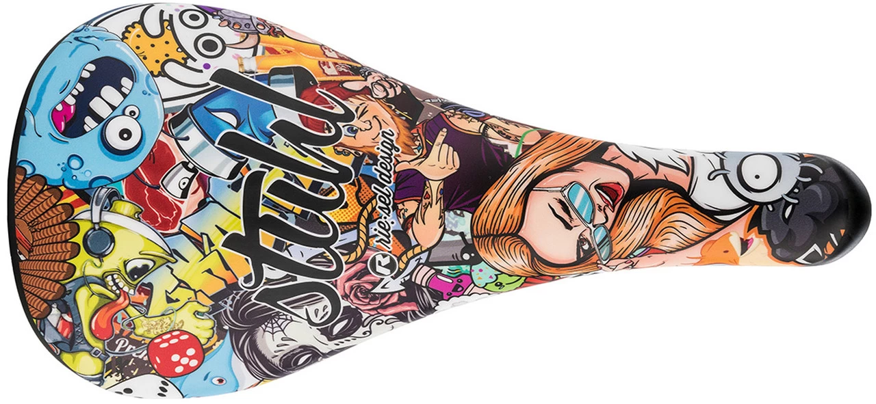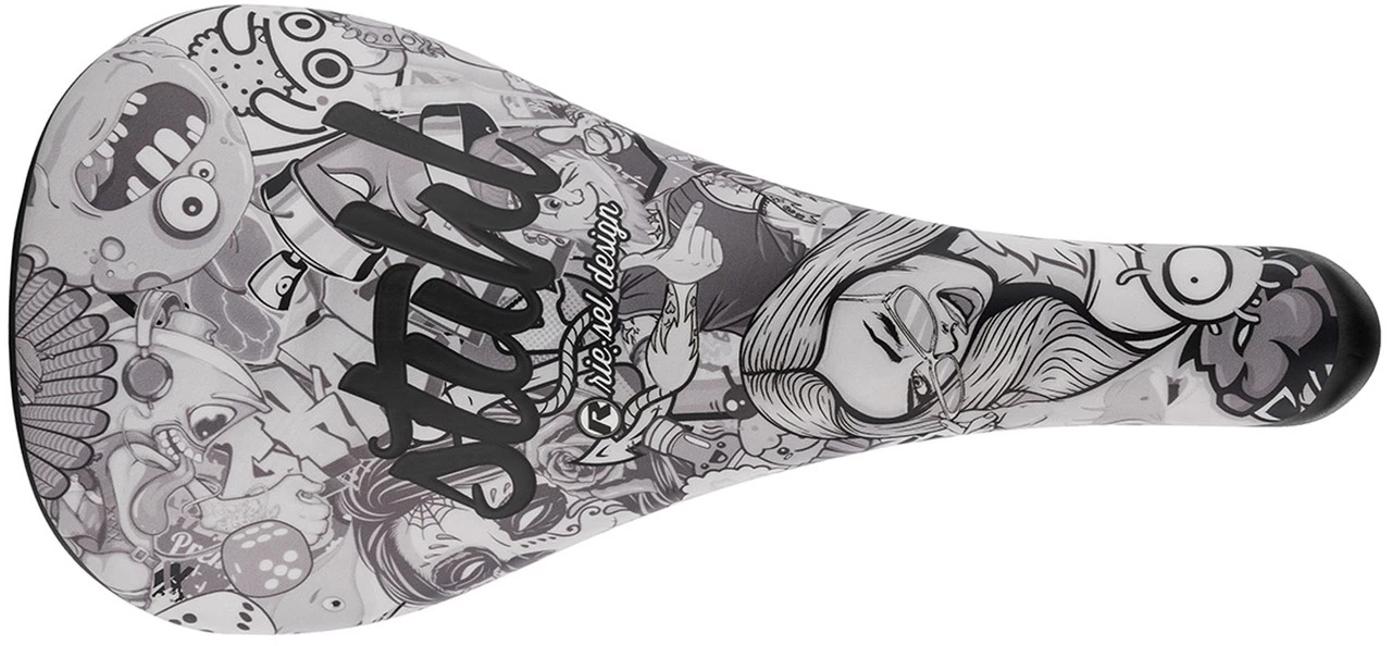 Bontrager / Trek (without special clamps)Crank Brothers Kronologo (dropper post)Easton CT2M2RacerMoots Straight Laced and Laid BackRace Face XYUSE Alien (without special clamps)Features:original rie:sel designsuitable for road and MTBunique designtotally carbon saddleflat broad noseflexible saddle shellManufacturer Numbers:stickerbomb:RS-S009stickerbomb-ultra black:RS-S010girl:RS-S011stealth:RS-S012green:RS-S013red:RS-S014blue:RS-S015orange:RS-S016purple:RS-S017pink:RS-S018Contents:1 x rie:sel stu:hl saddle